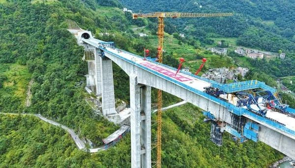 9月30日,由中國鐵建大橋局承建的渝昆高鐵三股水特大橋合龍。這是渝昆高鐵全線首座墩高130米以上特高橋合龍,為全線按期建成通車奠定了堅實基礎。至此,渝昆高鐵橋梁施工已完成超97%。