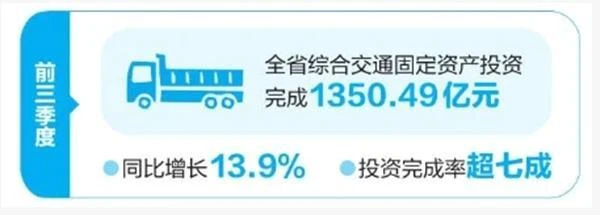 今年1月召開的全省交通運(yùn)輸工作會議強(qiáng)調(diào),加快完善服務(wù)國家戰(zhàn)略的綜合立體交通網(wǎng)絡(luò)。重大項(xiàng)目建設(shè)高歌猛進(jìn)的背后,是全省綜合交通投資的強(qiáng)勁支撐。前三季度,全省綜合交通固定資產(chǎn)投資完成1350.49億元,同比增長13.9%,完成年初制定目標(biāo)1800億元的75.0%。