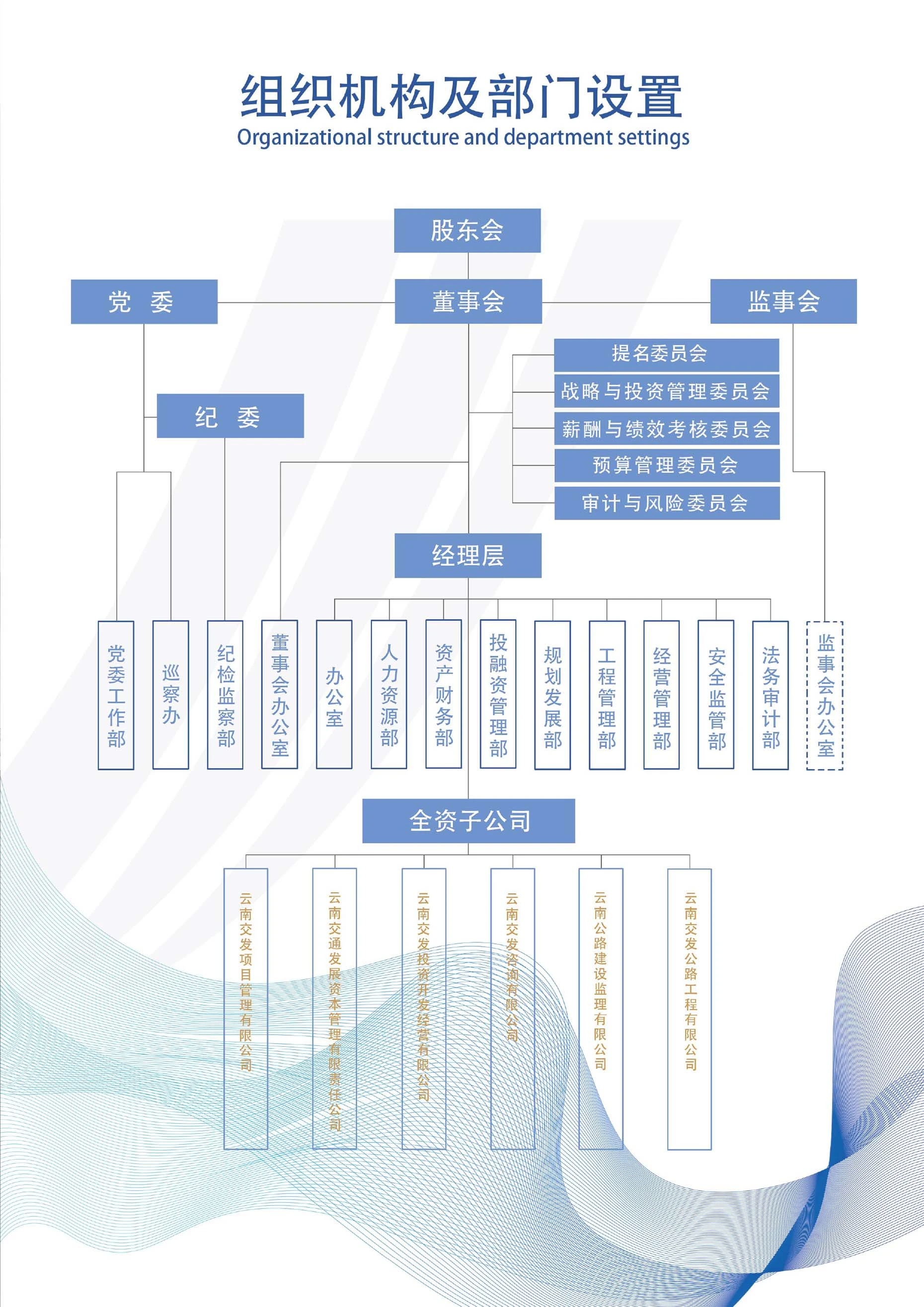 資本公司本部共設(shè)6個部門,分別為經(jīng)營管理部、法務(wù)風(fēng)控審計部、綜合辦公室、黨群工作部、資產(chǎn)財務(wù)部、紀(jì)檢監(jiān)察部;資本公司下設(shè)4家子公司,分別為云南交通產(chǎn)業(yè)私募基金管理有限責(zé)任公司、云南交投資產(chǎn)管理有限責(zé)任公司、云交發(fā)(廣東)商業(yè)保理有限公司、云交發(fā)(廣東)融資租賃有限公司。